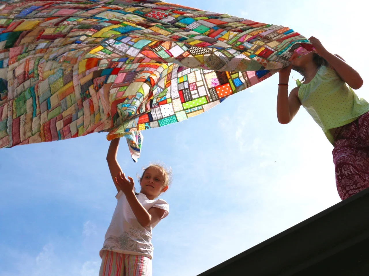With forgiveness in your heart you welcome the cute photobombers who draw on themselves and the reluctant quilt holders. Even the wind.