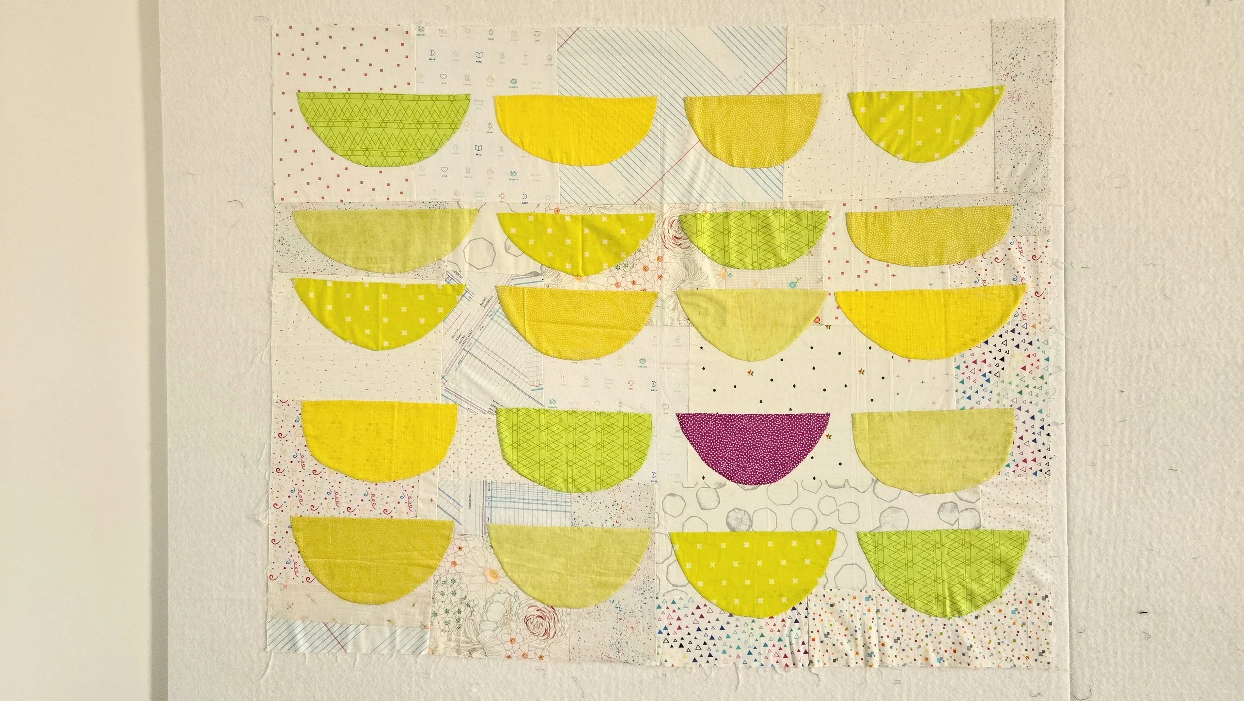 I used a pile of low volume scraps to make a big slabs and grabbed a stack of fabric on my way out the door to teach Improv Applique. It was so unplanned I didn’t have thread for the applique and had to shop the floor of the quilt show before my class started! As is the case in this class, the shape was improvised on the spot. Maybe I had the idea before? I don’t remember. Regardless, it’s a good shape to teach because we have curves and corners.