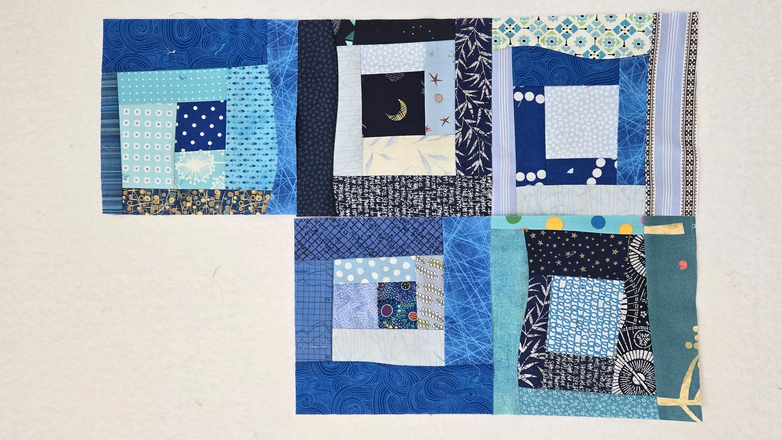 These log cabins were that first bit of play. I wanted to show that within a single colour - blue - fabric gives us so many variations and by sorting our fabric accordingly when we use it, we can get some pretty great results.