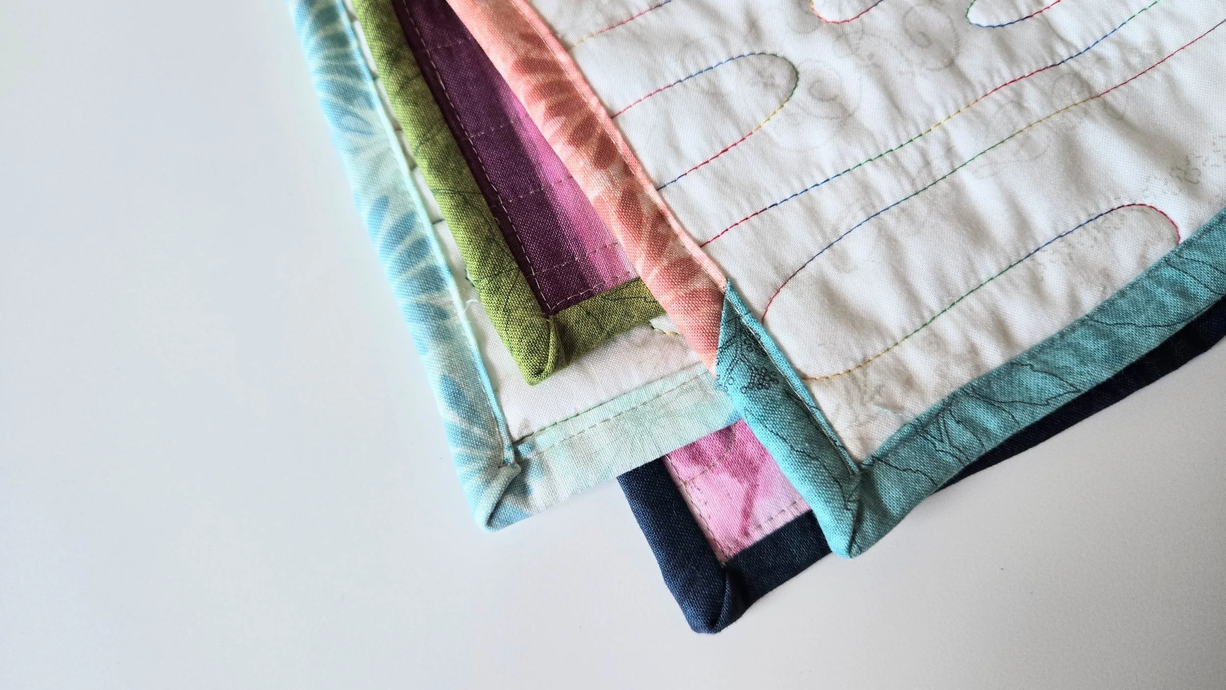 The binding was made from some leftover pieces of the jellyroll. They are already 2.5” wide afterall! And then I didn’t need to pick anything specific for the frame of the quilt.