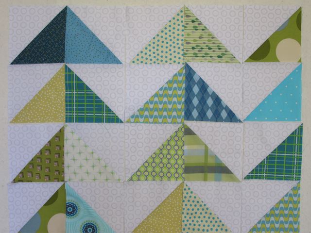 The versatility of the half square triangle is liberating. It can also be paralyzing when you actually examine the options for laying out a quilt from nothing but HSTs. If you are a person who has a hard time making decisions it is best not to play with layouts. Go with your gut the first time out.