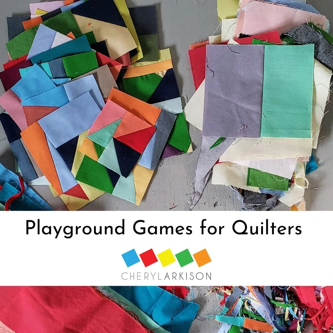 Join Cheryl Arkison in this fast paced and fun playdate! Take a stack of fabric, cut it, then sew it back together. Now repeat. This Playdate is about exploring fabric, shape, line, and design. It gives quick and striking improv results.